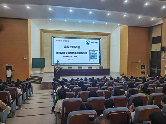 諸暨市楓橋鎮(zhèn)中心學(xué)校黨委副書記兼初級(jí)中學(xué)校長楊立波作題為《如何讓孩子適應(yīng)初中學(xué)習(xí)與生活》的講座,楊立波從“思考問題”“學(xué)校簡介”“分析學(xué)生”“幾點(diǎn)希望”四個(gè)方面講述。