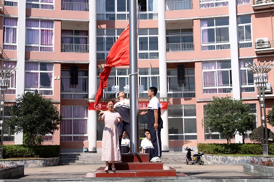 在雄壯的國歌聲中,全體教師、學(xué)生莊嚴肅穆,瞻仰國旗,緬懷歷史。