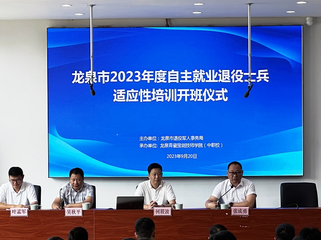 9月19日-22日,龍泉市2023年度自主就業退役士兵適應性培訓暨返鄉歡迎大會在龍泉青瓷寶劍技師學院(中職校)東校區培訓樓舉行。本次培訓包括創業及就業政策解讀課程、創業就業知識課程及就業招聘會,培訓后進行結業考試并頒發證書,幫助退役軍人創業就業。