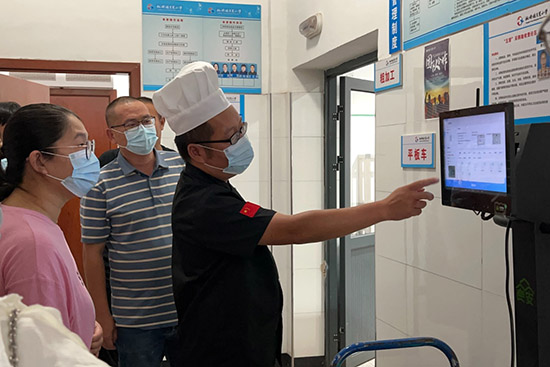 家委會成員們在趙娜的帶領下,參觀餐廳后廚的洗菜區、切配區、配餐間及消毒間等處,全面了解食堂操作的各個環節,對學校食堂的食品加工和服務樹立了信心,收獲了安心。