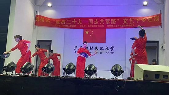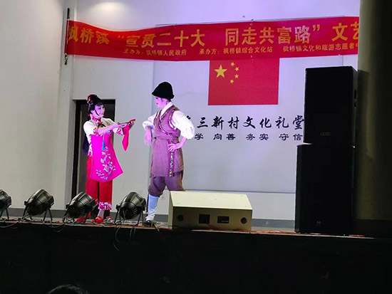 據悉,此文藝匯演由楓橋鎮人民政府組織,楓橋鎮綜合文化站、楓橋鎮社區教育學校、楓橋鎮楓之韻藝術團承辦。演員均為本鄉本土的文藝愛好者,以楓橋鎮楓之韻藝術團成員為骨干。為宣傳貫徹黨的二十大精神,在鎮域內31個村(社區)開展“宣貫二十大 同走共富路”送戲下鄉文藝巡演,為村民提供精神食糧,豐富群眾的文化生活。(孫文明)