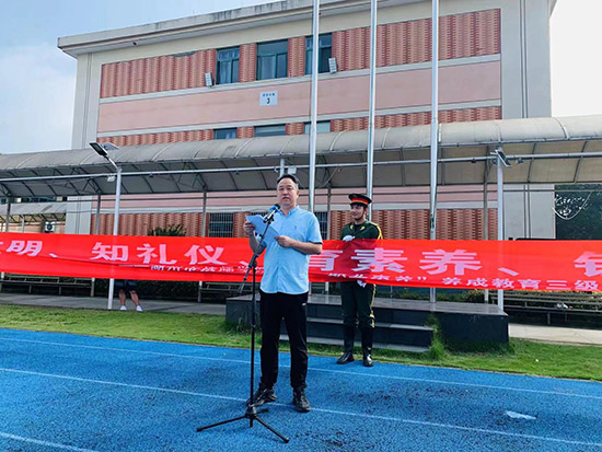 董國偉作三級管理制度啟動講話,他首先向參加儀式的學(xué)生家長表示熱烈的歡迎和衷心的感謝。他指出,制定并推進(jìn)三級管理制度,是為了更好地貫徹育人為本,德育為先的教育理念,通過家校共育、全程育人、全方位育人,推動全體學(xué)生認(rèn)真對標(biāo)三級管理制度的要求,真正在學(xué)思踐悟和比學(xué)趕超中,找到自身價值和定位,最終實現(xiàn)成長成才。同時,他提出三點希望:一是希望所有同學(xué)全面學(xué)、系統(tǒng)學(xué)、深入學(xué),積極參加學(xué)校組織的各項德育活動,鍛煉綜合能力,提升核心素養(yǎng);二是希望所有老師努力做教育改革的踐行者,學(xué)生成長的引導(dǎo)者,師生合力形成正向循環(huán);三是希望所有家長牢固樹立“家校共育”的理念,開展好家庭教育,家校連心,共同承擔(dān)好孩子的教育問題。