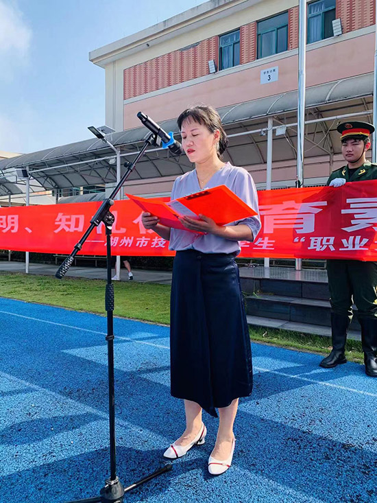 隆重的升國旗、奏國歌儀式結(jié)束后,政教處處長對學(xué)生“職業(yè)素養(yǎng)”養(yǎng)成教育三級管理制度進(jìn)行了說明和闡述。學(xué)生代表21跨境電商3+2班宋欣怡同學(xué)、21電商班楊洋同學(xué)向全體同學(xué)提出“養(yǎng)成良好習(xí)慣、文明伴我成長”倡議,班主任代表朱紅和教師代表石海峰、俞偉民作表態(tài)發(fā)言。來自22機電3+4班的王子健家長、22高考2班的宋甲第家長作為學(xué)校家委會成員代表進(jìn)行了發(fā)言,感謝學(xué)校對孩子們的用心管理、精心栽培,表示通過學(xué)生“職業(yè)素養(yǎng)”養(yǎng)成三級管理制度的落實,必將使每一位學(xué)生認(rèn)真遵守學(xué)校的紀(jì)律和規(guī)定,養(yǎng)成良好的行為習(xí)慣,促使孩子們更快進(jìn)步和成長。
