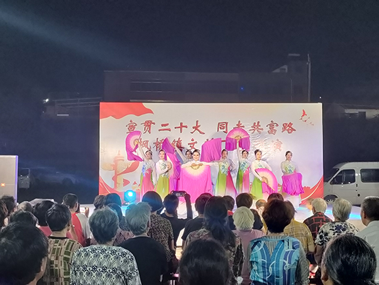 9月25日晚,由楓橋鎮社區教育學校組織的“楓橋鎮‘宣貫二十大 同走共富路’送戲下鄉文藝巡演”在諸暨市楓橋鎮魏廉村象山自然村舉行。