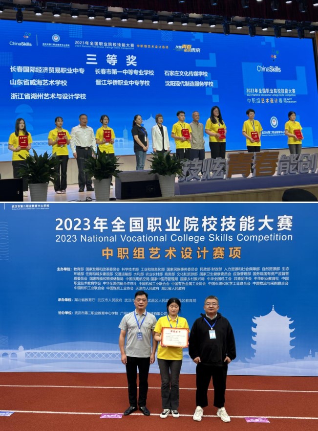 9月19日—9月22日,2023年全國(guó)職業(yè)院校技能大賽中職藝術(shù)設(shè)計(jì)賽項(xiàng)在武漢市第二職業(yè)教育中心學(xué)校舉行。浙江省湖州藝術(shù)與設(shè)計(jì)學(xué)校團(tuán)隊(duì)(選手:楊欣怡,輔導(dǎo)老師:張曉輝,協(xié)助:楊婧,領(lǐng)隊(duì):費(fèi)永軍副校長(zhǎng))赴武漢參加比賽。此次比賽共有來(lái)自全國(guó)各省市自治區(qū)、計(jì)劃單列市的73支參賽隊(duì),藝校選手楊欣怡突破重重困難榮獲三等獎(jiǎng),這也是藝校在職業(yè)技能大賽數(shù)年蟄伏后的首次亮相。
