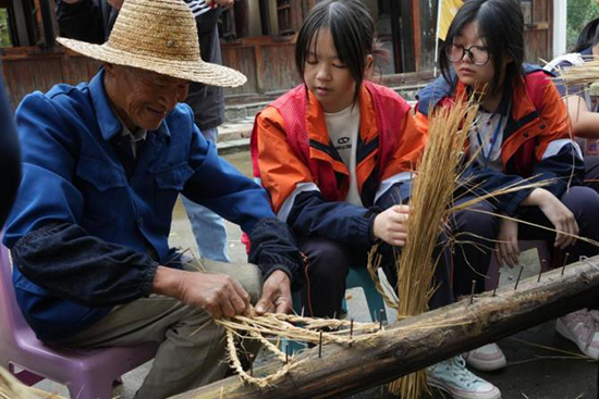 “這個也能穿嗎?很扎手”面對一捆捆稻草,同學們滿是疑惑的思緒。“紅軍長征紀念館的陳列室里,草鞋是常見的物品,草鞋的歷史最早可以追溯至西周時期……”在導游的講解下,老師傅的示范下,同學們躍躍欲試。戳草的技術有些難,手也有些疼,但不妨礙想出一個成品的心。疾風知勁草,草的生命力尚且如此堅毅,作為新時代的花朵更要學會吃得了苦的品質。