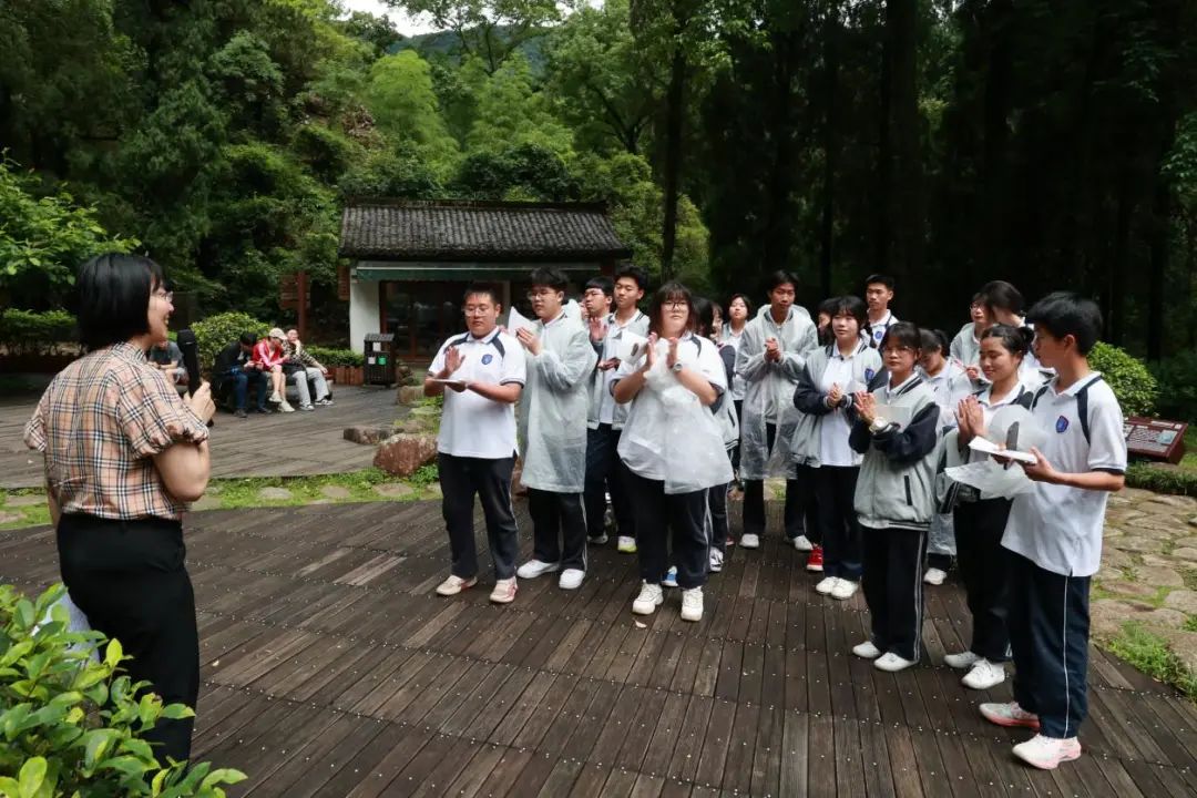 活動的第一站在雁蕩山靈巖景區(qū)進(jìn)行,來自沈民權(quán)名師工作室的學(xué)科帶頭人、溫州市華僑職業(yè)中等專業(yè)學(xué)校的黃書河老師和樂清雁蕩山旅游學(xué)校的鮑阿萍老師,為大家?guī)砹藘晒?jié)別開生面的公開課,這兩節(jié)公開課改變以往在教室里的傳統(tǒng)上課方式,選擇以雁蕩山靈巖景區(qū)為切入點進(jìn)行教學(xué)設(shè)計,將課堂搬到了景區(qū)。其中,黃書河老師的公開課以《雁蕩冠天下,靈巖尤絕奇》為題,以導(dǎo)游的第一視角講述了雁蕩山靈巖的奇妙風(fēng)光,他采用雙師共導(dǎo)的方式,邀請了雁蕩山資深導(dǎo)游員、全國高級導(dǎo)游員施麗老師一起參與授課,通過選擇靈巖景區(qū)的一個點進(jìn)行深入設(shè)計,教會學(xué)生如何講解山岳景觀,實現(xiàn)以點帶面、舉一反三、靈活運用,今后就能講解不同地區(qū)的山岳景觀。