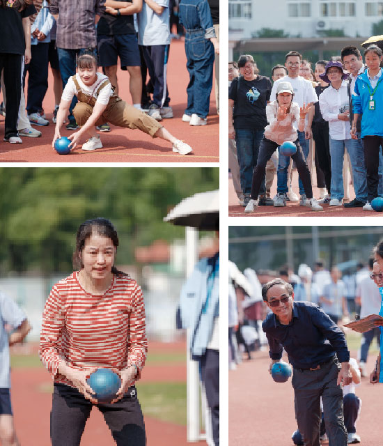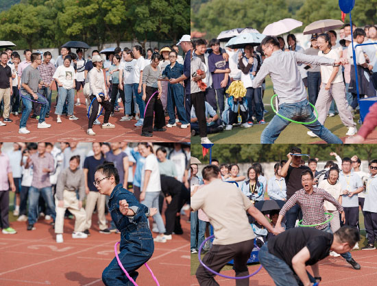 今年的教工運動會分為個人項目和集體項目,個人項目除了傳統項目保齡球和飛鏢之外,新增了與時俱進的“套圈圈”和懷舊的“滾鐵環”項目;集體項目除了保留傳統的毛毛蟲和同心鼓之外,新增了更具有趣味性的接力項目“螃蟹走”。