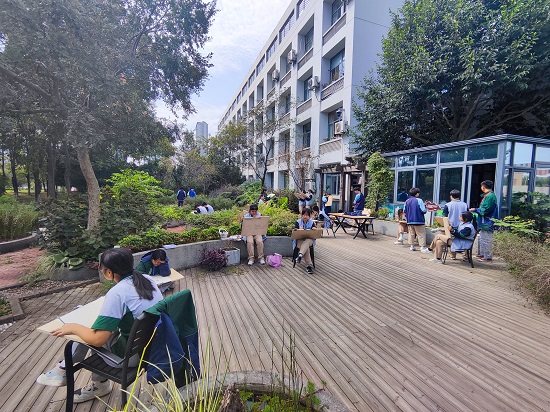 在寫生比賽現場,只見選手們看著眼前的美景與建筑,不一會兒便勾勒出了校園里的花草樹木、建筑。這是他們心中的信校秋景圖,訴說著信校的美麗與內涵,更訴說著對信校家園的情感。
