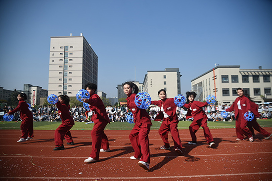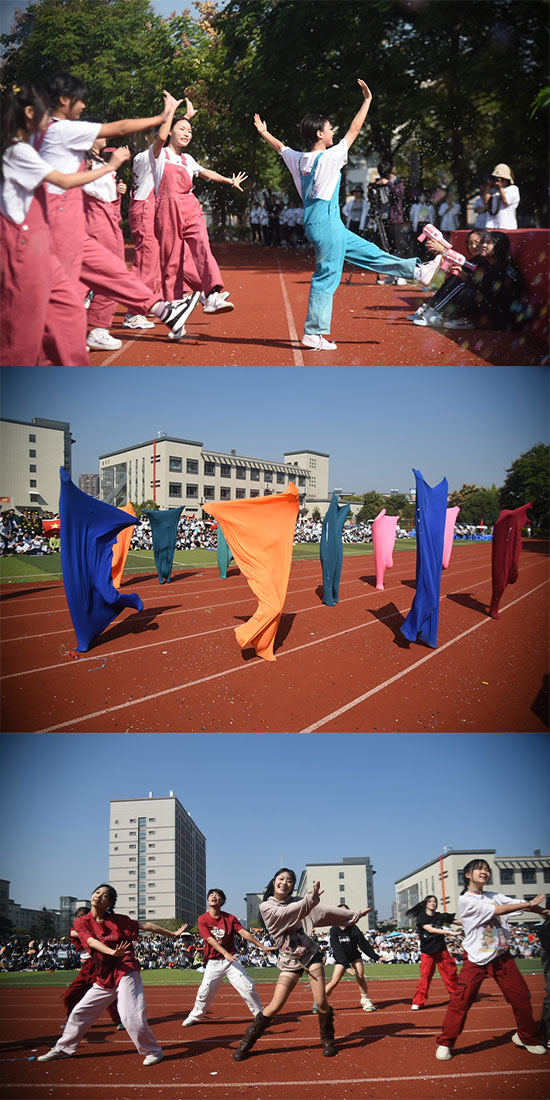 高一年級組學生帶來了亞運主題表演《一起向未來》。他們的表演動作整齊劃一,活力四射,展示了青荷學子團結向上,奮發進取的青春活力。