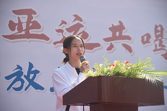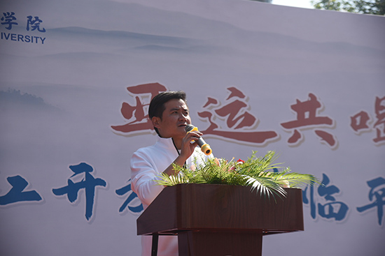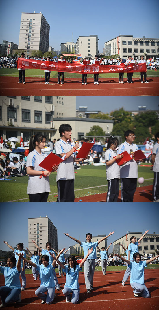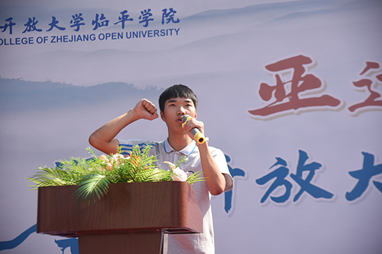 沈琪宣布浙江開放大學臨平學院第十三屆秋季運動會開幕。現場彩旗飄揚,掌聲雷動,為期兩天的校運動會正式拉開帷幕。