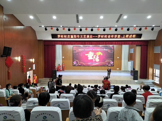 重陽節來臨之際,為弘揚中華民族尊老、愛老的傳統美德,讓社區老人們度過一個快樂、祥和的節日,10月18日上午,湖州市安吉教育學院上墅學習中心經過精心的組織和充分的準備,在上墅鄉羅村村老年學堂舉辦“重陽之約,共度美好時光”戲曲文藝演出活動,為轄區老年人帶來一場精彩的文化大餐,并送上濃濃的節日祝福。社區60歲以上的老年人歡聚一堂,演員們載歌載舞,為現場的老年人表演了舞蹈、京劇、表演劇等節目,掌聲、歡呼聲此起彼伏。現場洋溢著一片歡樂祥和的節日氣氛。