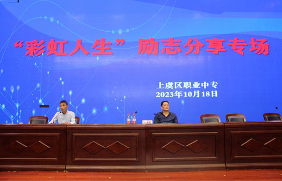 為進一步推進學校的感恩與勵志教育,培養學生懂感恩、善勵志、思進取的優秀品質,落實立德樹人根本任務,10月18日,紹興市上虞區職業中專特邀浙江省自強模范、紹興市最美人物、上虞區十佳好人黃建根老師為全校師生帶來“彩虹人生”感恩勵志教育講座。