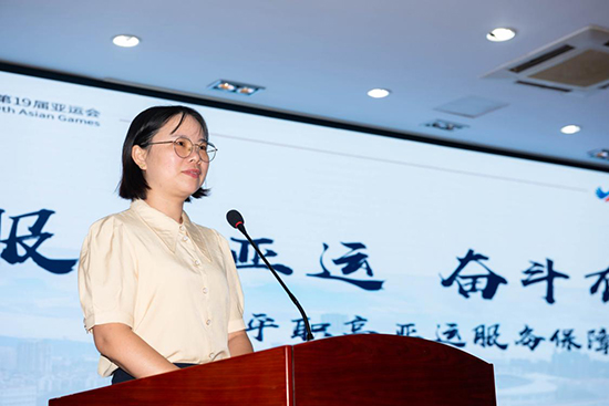 吳燕麗宣讀臨平職高服務亞運保障工作先進個人名單。