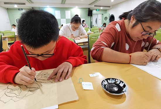 學員中有幾位小學生,在父母的陪同下一起學習,作為零基礎的小學生,第一次跟爸爸媽媽一起臨摹,認真而努力。