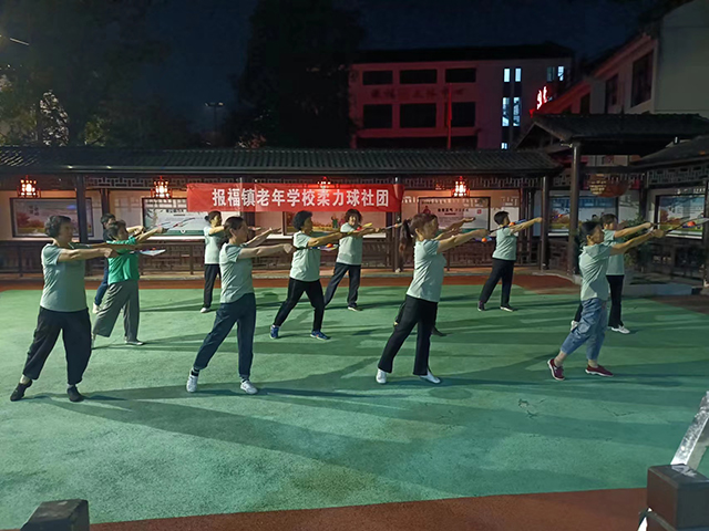 每當(dāng)夜幕降臨,報福文體中心的健身場地便熱鬧了起來。在悠揚(yáng)的樂曲聲中,一群大媽踏著旋律,揮舞著球拍,盡情地釋放力量與快樂。