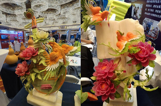 果蔬雕刻展示區同樣吸引了眾多觀眾駐足。師生們利用各種時令果蔬進行雕刻創作,呈現出精美的圖案和造型。這些果蔬雕刻作品不僅展示了學院在烹飪技藝方面的實力,還傳遞了健康飲食的理念。
