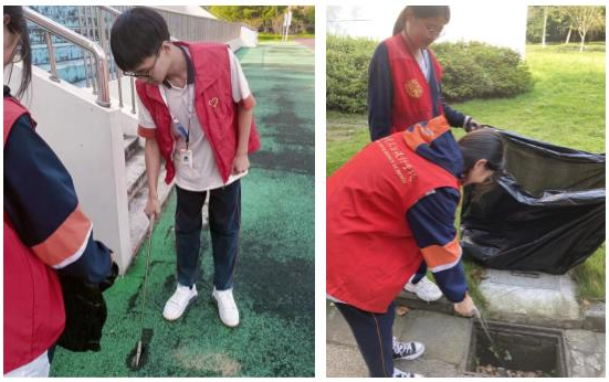 最后在老師和班委的帶動下,同學們手拿火鉗、塑料袋,迅速投入到活動中。同學們身穿紅馬甲穿梭在校園中的各個角落,速度快,聲音小,動作穩,一切工作都配合得井然有序。
