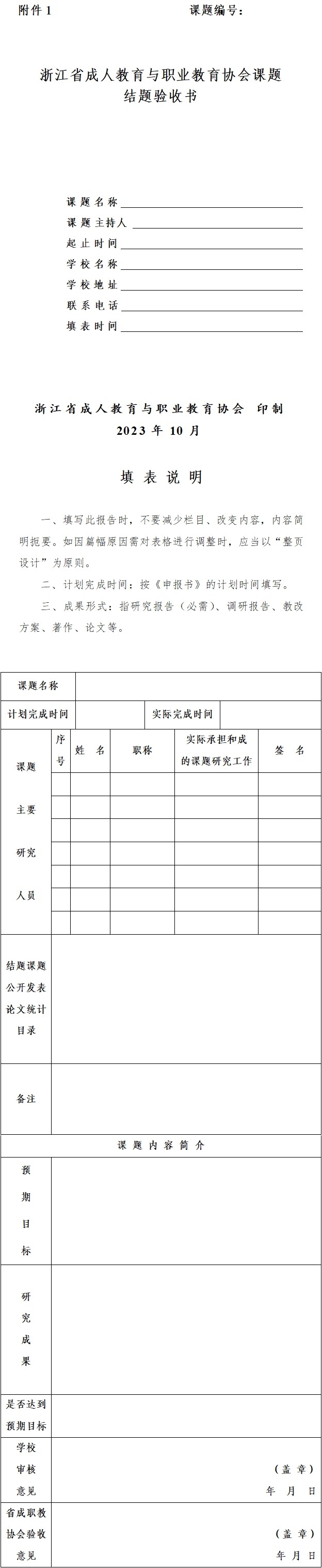 1.請各立項課題主持人準備好《結題驗收書》、《結題研究報告》和學術期刊發表材料(封面、封底、目錄、正文),加蓋公章后將電子版(word版和PDF版各一份)發至指定郵箱。高職院校課題發送至各高職院校;中職學校、成人文化技術學校(社區學校)、普通高校繼續教育學院以學校為單位統一報送至協會秘書處郵箱。材料報送時間:11月1日-11月17日。