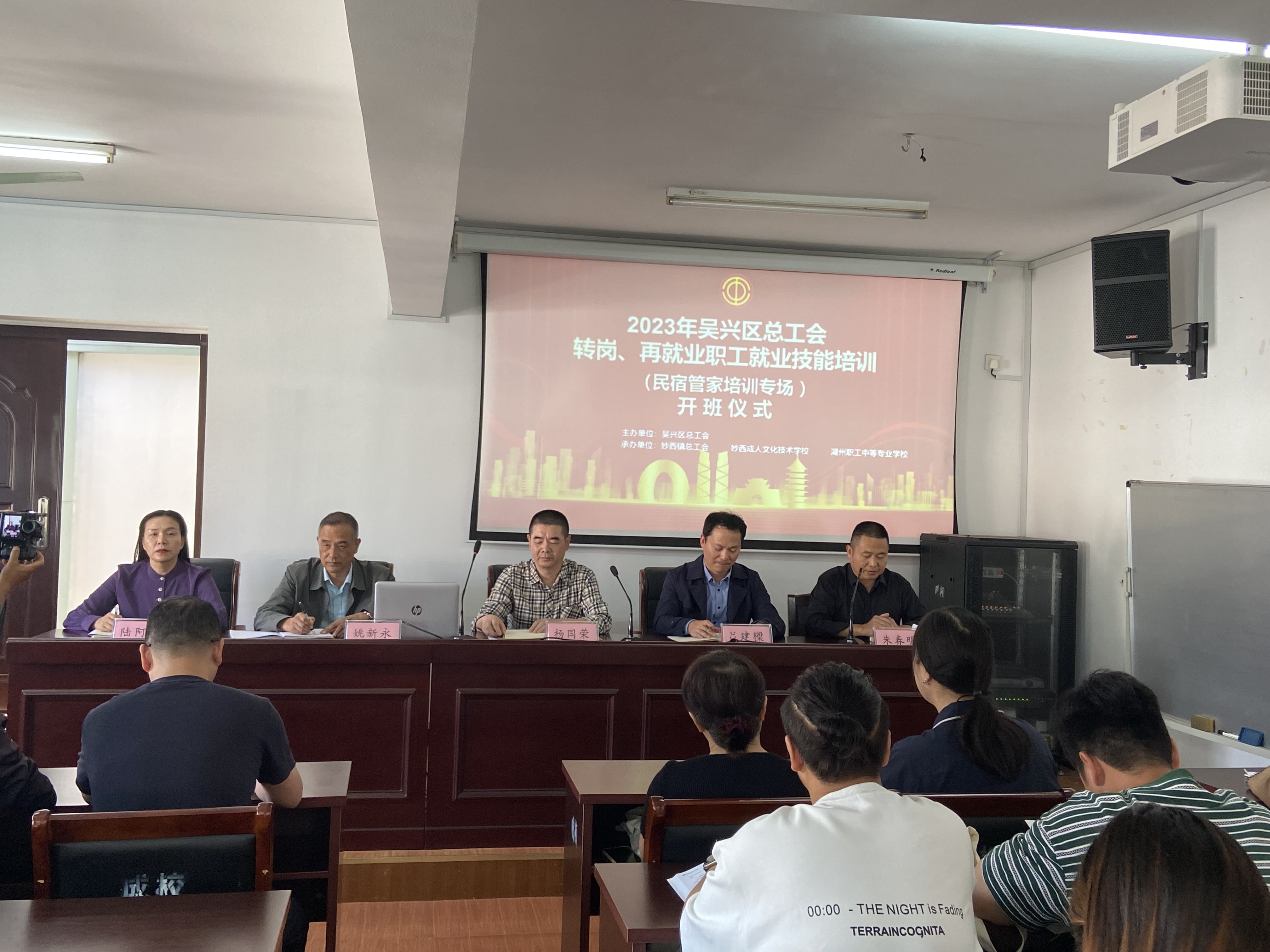 近日,由湖州市吳興區總工會主辦,妙西鎮總工會、湖州職工中等專業學校和妙西成人文化技術學校聯合承辦的2023年民宿管理從業人員能力提升培訓班在妙西成校開班。