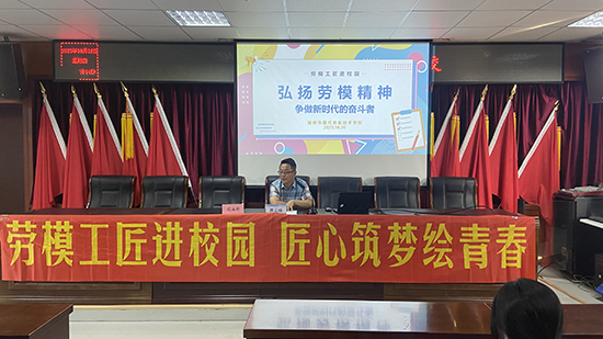 為大力弘揚勞模精神、勞動精神、工匠精神,充分發(fā)揮新時代勞模工匠的引領(lǐng)作用,近日,湖州市現(xiàn)代農(nóng)業(yè)技術(shù)學(xué)校舉辦“勞模工匠進(jìn)校園 匠心筑夢繪青春”勞模進(jìn)校園宣講活動。活動特別邀請湖州市吳興區(qū)勞動模范費云峰,以匠心的傳承以及職業(yè)幸福感為主線,為同學(xué)們講述他的職場故事。