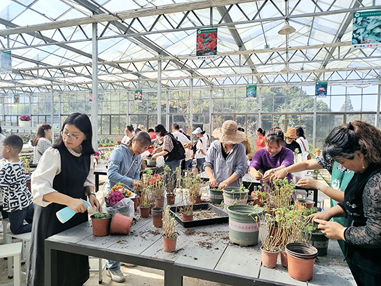 11月5日,苕溪成校校長王紅元帶領的《花卉園藝培訓班》一行人來到湖州農校開展實踐活動,農校第一黨支部“杏壇先鋒+助農服務團隊”的志愿者老師提供帶領、講解、授課等服務。此次實踐培訓活動以農校學生創業孵化中心為起點,了解了品種多樣的農產品。著重參觀了綜合實訓基地,觀賞了菊花田、稻田、中草藥大棚、園林景觀大棚和花卉大棚,學習了帝王菊、洛神花、錦屏藤、曼陀羅、龍舌蘭等花卉的種養管理知識,開展了碰碰香和長壽花的分株換盆活動。以《常見花卉栽培與病蟲害防治》課程教學為壓軸,葉芬芬老師深入淺出、活潑生動的講述,引發了學員對于日?;ɑ苤参锓N養的交流探討,豐富了學員的園藝知識,提高了他們的實用技能水平。