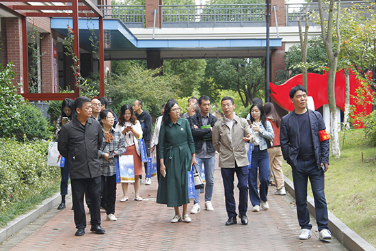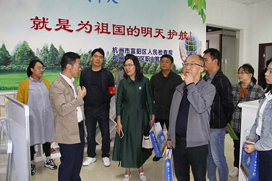 考察團(tuán)隊一行在富陽區(qū)職教中心黨委副書記章文泉,副校長陳建榮、劉著程的陪同下,實地參觀考察了學(xué)校實訓(xùn)樓、中藥陳列館、茶藝室、法制公園、民族文化公園、學(xué)生生活區(qū)、心理活動站等,深入了解學(xué)校基礎(chǔ)建設(shè)、特色專業(yè)建設(shè)工作。每到一處,考察組仔細(xì)察看學(xué)校建設(shè)基本情況,不時提出問題,共同探討成效。美麗的職教校園,特別是整齊劃一的跑操給考察組一行留下了深刻的印象。