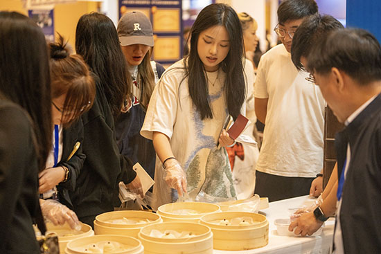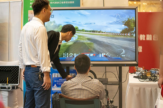 展區(qū)展位上,學校的智慧物流、汽車模擬項目等吸引了大批人員前來體驗;同時,學校的烹飪雕刻得到了大家贊嘆,大家紛紛拿出手機拍攝師生雕刻的作品;還有部分人員被師生制作的糕點吸引,他們品嘗后表示制作精美、味道很好。