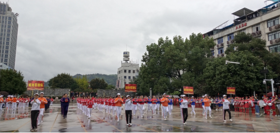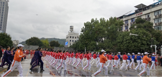 展演現(xiàn)場(chǎng),腰鼓、軍鼓、啞鈴操輪番上場(chǎng)。