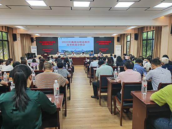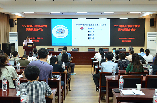 9月28日上午,2023年衢州市職業學校高考質量分析會在衢州第二中專崇業樓一樓報告廳舉行,江山市教育局黨委委員、副局長王以洪,衢州市教育局教研室主任徐雪斌、副主任江雷,各縣(市、區)教育局教研室職教教研員,各職業學校分管教學副校長、教務主任,高三年級組長及語、數備課組長等骨干教師,全市各學科教研大組組長、高考研究小組組長100余人參加會議。