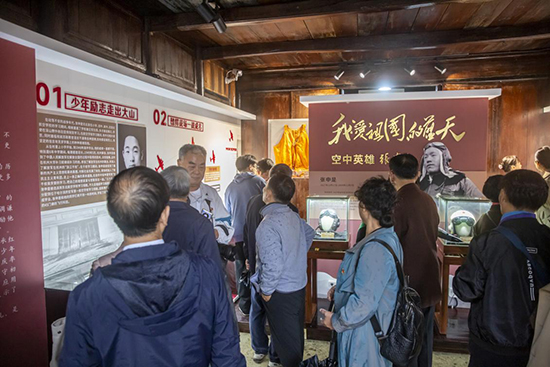 紀念館以“追尋英雄足跡,傳承紅色基因”為主題,按照時間脈絡分“少年勵志走出大山”“朝鮮戰場一戰成名”“獻禮國慶率獲戰功”“征服高原不懼生死”“轉業地方堅守初心”五大板塊。運用圖文、影像、實物等展示了張申是光輝偉大的一生。館內保管和陳列的150多件紅色物件,均由張申是女兒張古月無償捐贈。一件件英雄遺物、一張張老照片……刻烙著英雄的足跡,記錄著當年英勇戰斗、保家衛國可歌可泣的英雄往事。黨員學員們站在英雄雕像前深情地凝望,崇敬之情溢于言表!