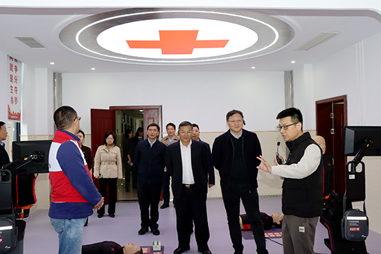 重慶市紅十字會(huì)考察組一行首先實(shí)地參觀了學(xué)院二樓“柯橋區(qū)紅十字應(yīng)急救護(hù)培訓(xùn)基地”教學(xué)區(qū)、體驗(yàn)區(qū)和實(shí)訓(xùn)區(qū),并現(xiàn)場(chǎng)聽(tīng)取了學(xué)院相關(guān)負(fù)責(zé)人關(guān)于基地融合紅十字運(yùn)動(dòng)文化傳播、生命教育、安全體驗(yàn)、救護(hù)培訓(xùn)等工作情況介紹,隨后,來(lái)到四樓“柯橋區(qū)青少年生命成長(zhǎng)中心”參觀學(xué)習(xí)。