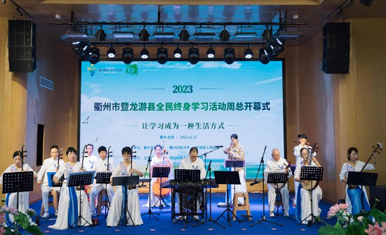 本次開幕式活動形式多樣、豐富多彩,充滿地方元素特色。有龍游縣社區(qū)學(xué)院選送的民樂合奏《撥根蘆柴花》、柳園小學(xué)的婺劇《別洞觀景》、模環(huán)鄉(xiāng)社區(qū)學(xué)校的道情說唱《家鄉(xiāng)的變化》、實驗幼兒園的情景劇《永不消逝的電波》以及詹家鎮(zhèn)社區(qū)學(xué)校的畬族舞蹈《山哈一曲唱浦山》等文藝節(jié)目,來自龍游縣15個鄉(xiāng)鎮(zhèn)(街道)社區(qū)學(xué)校分管負(fù)責(zé)人共同宣讀了《全民終身學(xué)習(xí)活動倡議書》。