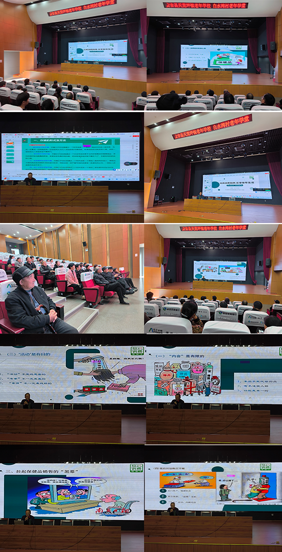 為進一步做好老年人安全防范教育,維護老年消費群體合法權益,提高防范消費陷阱的意識,有效應對各式各樣的“老年消費騙局”,11月19日下午,安吉縣社區教育學院天荒坪分院(安吉縣天荒坪鎮老年學校)邀請原安吉縣市場監管局執法大隊大隊長,現安吉縣市場監管局老干部二支部書記王國勝,在天荒坪鎮白水灣村文化禮堂作“遠離消費陷阱 樂享老年生活”的講座。