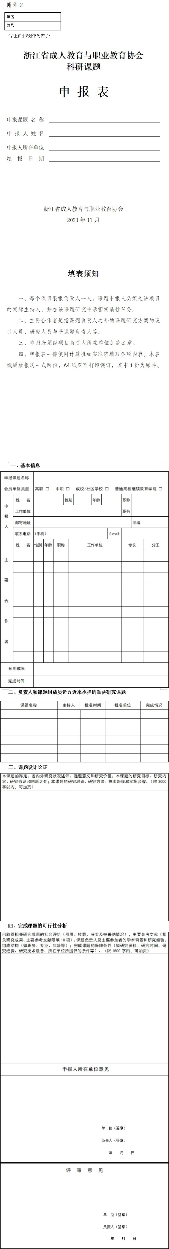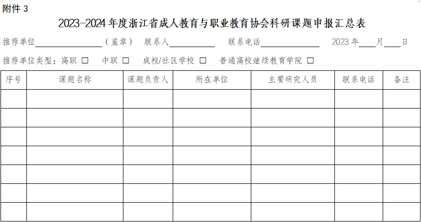 2.浙江省成人教育與職業(yè)教育協(xié)會(huì)科研課題申報(bào)表