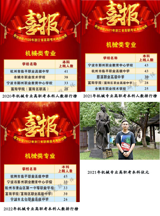 近四年,本科上線人數(shù),連續(xù)四年位列浙江省第一。馬駿毅同學(xué)勇奪2021年全省狀元,每年有大批學(xué)生進(jìn)入中國(guó)計(jì)量大學(xué)、浙江科技學(xué)院、浙江師范大學(xué)、溫州大學(xué)等知名院校深造。多年來培養(yǎng)了,如:全國(guó)課程思政教學(xué)名師盛國(guó)棟,浙江工業(yè)大學(xué)在讀博士生吳佳峰等。