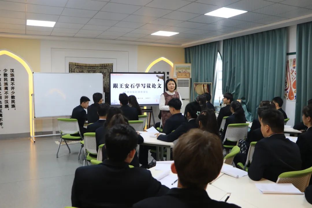 會(huì)后,各理事單位領(lǐng)導(dǎo)在姚雁等校領(lǐng)導(dǎo)的陪同下,參觀了和潤(rùn)工作室等民族融合陣地,觀摩了朱曉昱老師開(kāi)設(shè)的一堂《跟王安石寫(xiě)議論文》的常態(tài)課,并開(kāi)展了說(shuō)課、評(píng)課活動(dòng)。