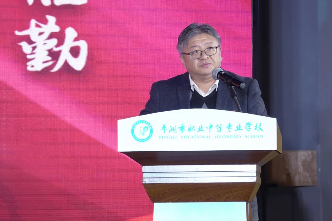 浙江省教育廳職成教處張盛,嘉興市教育局四級(jí)調(diào)研員孟廣斐,平湖市教育局黨委委員、專職副總督學(xué)王獻(xiàn),平湖市職業(yè)中等專業(yè)學(xué)校黨委書(shū)記、校長(zhǎng)姚雁,副書(shū)記、副校長(zhǎng)(正校級(jí))蔡立柱,黨委委員、副校長(zhǎng)張躍平及承辦新疆中職班的6所兄弟學(xué)校領(lǐng)導(dǎo)出席,全體新疆班學(xué)生參加。