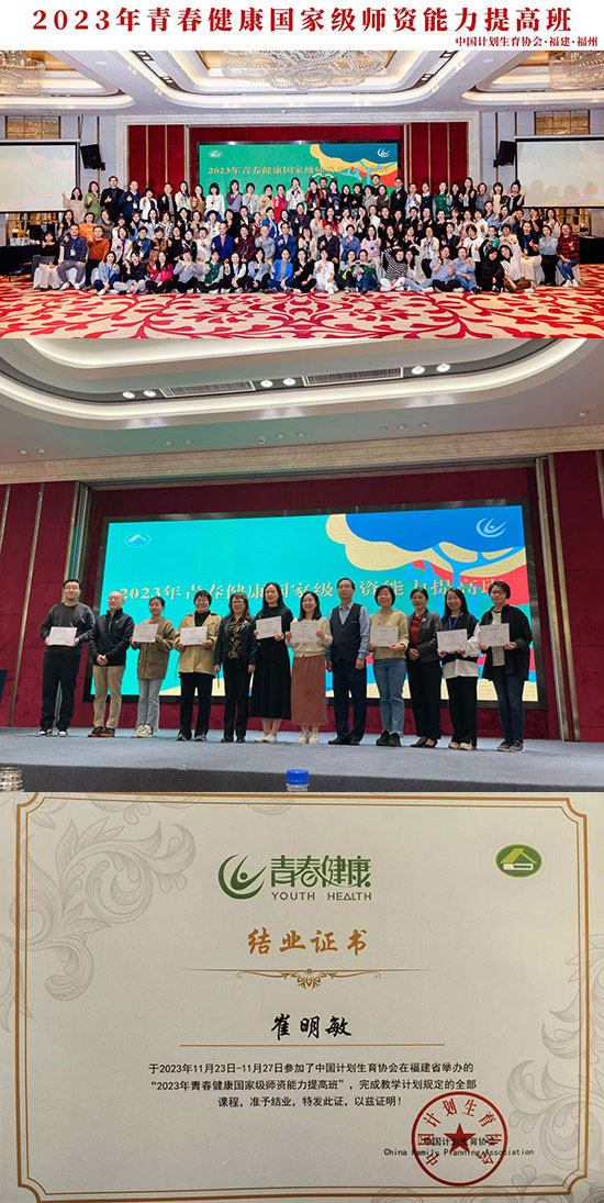 近日,德清職業中專崔明敏老師分別參加了由中國計生協舉辦的青春健康國家級師資能力提高班和省計生協召開的青春健康教育專家研討會,旨在全面提升學校青春健康教育師資專業能力與水平,進一步增強青春健康培訓質量,為提升學校青春健康工作成效夯實基礎。