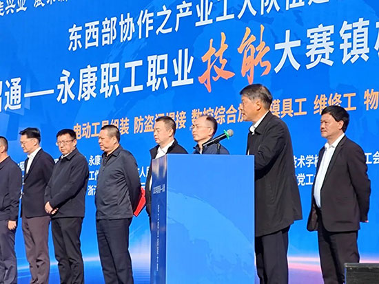 昭通市委常委、副市長(zhǎng)夏林宣布“東西部協(xié)作之產(chǎn)業(yè)工人隊(duì)伍建設(shè)改革暨昭通—永康職工職業(yè)技能大賽五金工競(jìng)賽”開(kāi)賽!