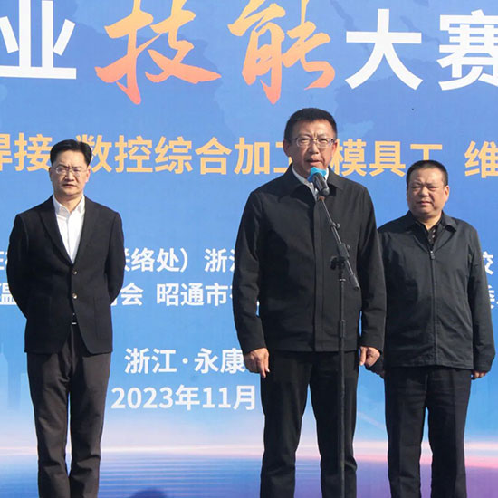 永康市委常委、副市長(zhǎng)李浩鋒發(fā)表了熱情洋溢的致辭,他介紹了永康的基本情況、昭通人在永康的貢獻(xiàn)及本次比賽的重要性和意義。還特別感謝了組委會(huì)的辛勤付出,以及各支隊(duì)伍積極參與,認(rèn)為他們的熱情和努力對(duì)于本次大賽的成功至關(guān)重要。他希望通過(guò)搭建技能大賽的交流學(xué)習(xí)平臺(tái),推進(jìn)東西部協(xié)作,提升五金工匠技能水平,構(gòu)建職業(yè)教育與區(qū)域發(fā)展的“命運(yùn)共同體”。