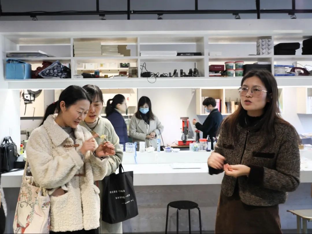 本次參觀路線涵蓋了美育展示廳、品牌營(yíng)銷+陳列工作坊、湖畔之思工作室、黨建長(zhǎng)廊、藝承工作室、實(shí)訓(xùn)長(zhǎng)廊、學(xué)生事務(wù)中心、一爾皮具工作室、匠心坊、工美集裝箱展廳、廉政公園及名師長(zhǎng)廊等多個(gè)環(huán)節(jié)。培訓(xùn)班成員在校辦主任邵曉鳳的詳細(xì)介紹下,了解了藝校的校園文化、黨建文化、實(shí)訓(xùn)室建設(shè)及教學(xué)管理等情況。