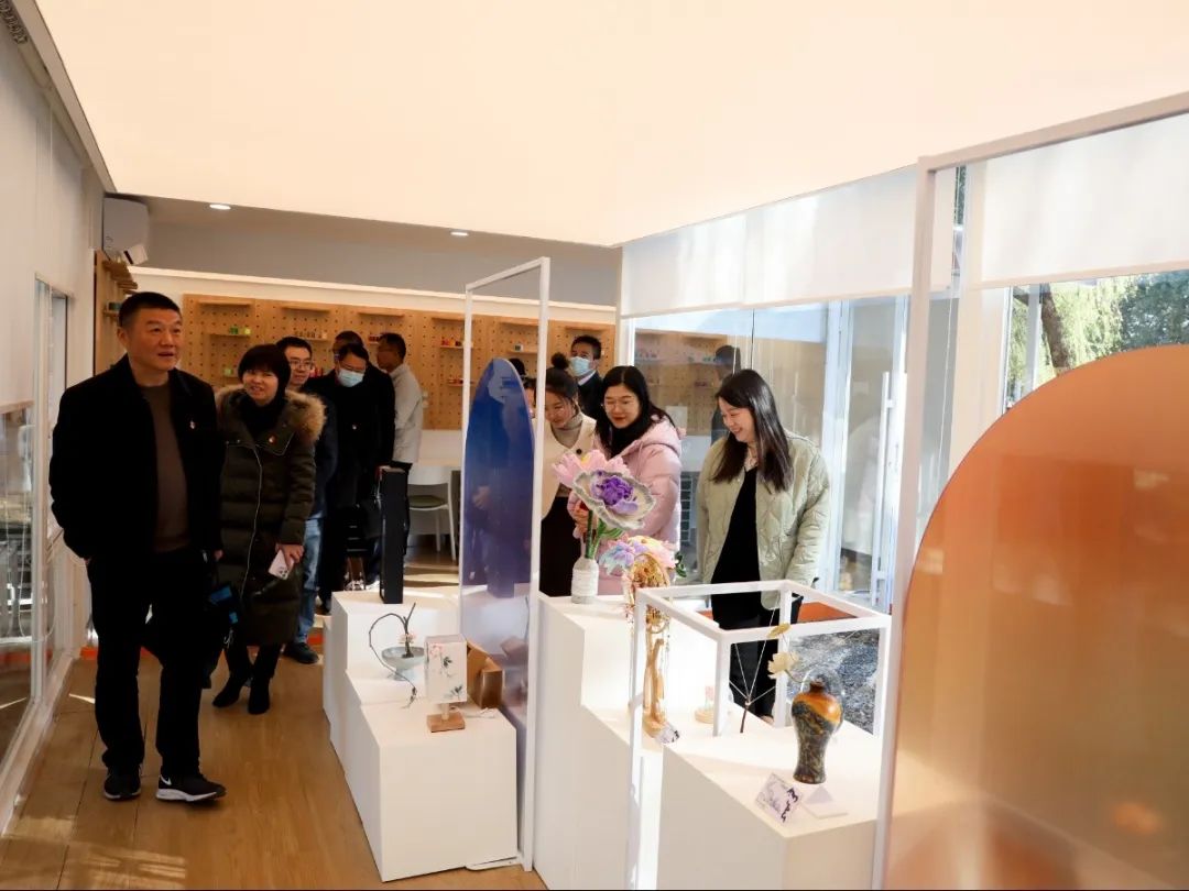 在一爾皮具工作室、工美集裝箱展廳中,韓憶劼老師指導(dǎo)學(xué)生設(shè)計(jì)和制作的皮具飾品、沈亞玲老師指導(dǎo)的學(xué)生手工編織作品以及匠心坊中一幅幅精美絕倫漆畫作品,引來(lái)眾多贊嘆聲,大家紛紛拍照留念。