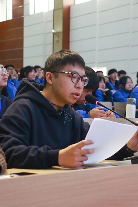 校學生會主席趙華樑同學發言,他認為在學生會的管理上,團結合作是最重要的。只有團結一心,凝聚每一位成員的智慧和力量,才能更好地完成學生會的各項工作,面對日益多元化的學生需求時,我們要敢于嘗試新領域,新方法,敢于創造,以適應新時代的發展。希望大家能夠更加注重服務同學,關心同學。此外他還希望學生會能夠更加重視專業素養的提升,不斷加強成員們的綜合實力。