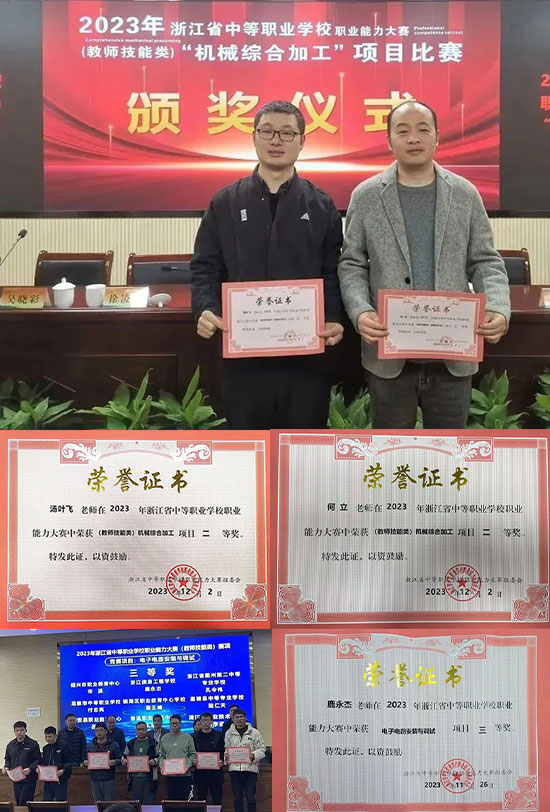 近日,由浙江省教育廳主辦的2023年全省中等職業學校職業能力大賽(教師技能類)“機械綜合加工”項目和“電子電路安裝與調試”項目比賽已圓滿落幕。浙江信息工程學校·湖州工程技師學院何立和湯葉飛老師團隊最終斬獲機械綜合加工項目二等獎,鹿永杰老師斬獲電子電路安裝與調試項目三等獎,為學校贏得了榮譽。比賽競爭異常激烈,學校兩支代表隊經過數月的備戰和緊張的角逐,終于在眾多強隊中脫穎而出,斬獲好成績。