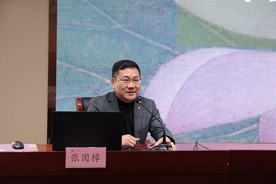 作為中華民族的傳世之寶,中國(guó)畫蘊(yùn)含東方美學(xué)和中華精神,是美育教育的重要組成部分。張國(guó)樟以“提升公共審美素養(yǎng)”為主題,與在場(chǎng)師生探討中國(guó)畫所呈現(xiàn)出來(lái)的獨(dú)特魅力和千年歷史背景,他從東方美學(xué)、美學(xué)自信、美忌六氣、皇帝畫家、意境之美、單純之美、構(gòu)成之美、氣韻生動(dòng)、賦彩之美、人文之美十個(gè)方面分析了文化美學(xué)的內(nèi)涵,他結(jié)合個(gè)人的創(chuàng)作實(shí)踐經(jīng)歷,對(duì)傳統(tǒng)中國(guó)畫獨(dú)特的美學(xué)性格和藝術(shù)表現(xiàn)形式進(jìn)行深入剖析。現(xiàn)場(chǎng)師生通過(guò)大屏展示的一幅幅經(jīng)典名畫仿佛穿越時(shí)空,與美學(xué)來(lái)了一次心靈對(duì)話。互動(dòng)環(huán)節(jié),張老師還與現(xiàn)場(chǎng)師生進(jìn)行了審美素質(zhì)測(cè)試,師生互動(dòng)交流,氣氛熱烈。