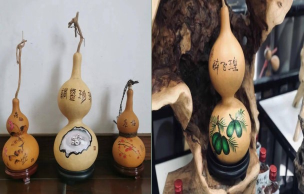 “我們非遺的這個王繼達師父是非遺(火烙葫蘆)的傳人,其實我從小就和他認識,那個時候我們都是望煙書畫院的會員,他贈送給我一個《馬到成功》的火烙葫蘆,因為我是一個從事美術教學的老師嘛,看了之后,就覺得跟這個繪畫能有機結合起來,后來我們談論之中發現,他也在尋徒,我也剛好有這個意向,一拍即合,就作為一種愛好慢慢地體驗。”蔣老師跟我們講述了他與火烙葫蘆之間的緣起。這一體驗就是五年,在這五年時間里,蔣老師用熱愛,把烙畫葫蘆這項技藝融入了職業。“繪畫上能表達的,無論是這種小品類的、寫實類的,我在葫蘆上基本上都可以表達出來。”蔣老師說。