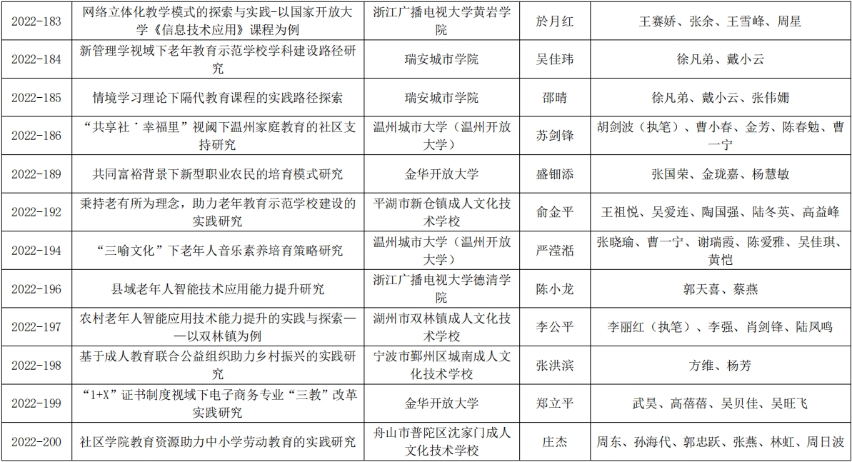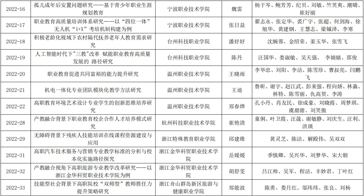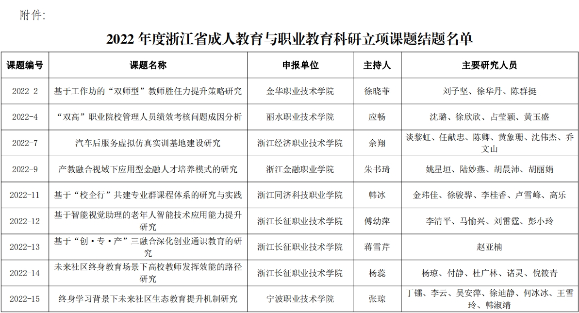 附件:2022年度浙江省成人教育與職業(yè)教育科研立項課題結(jié)題名單