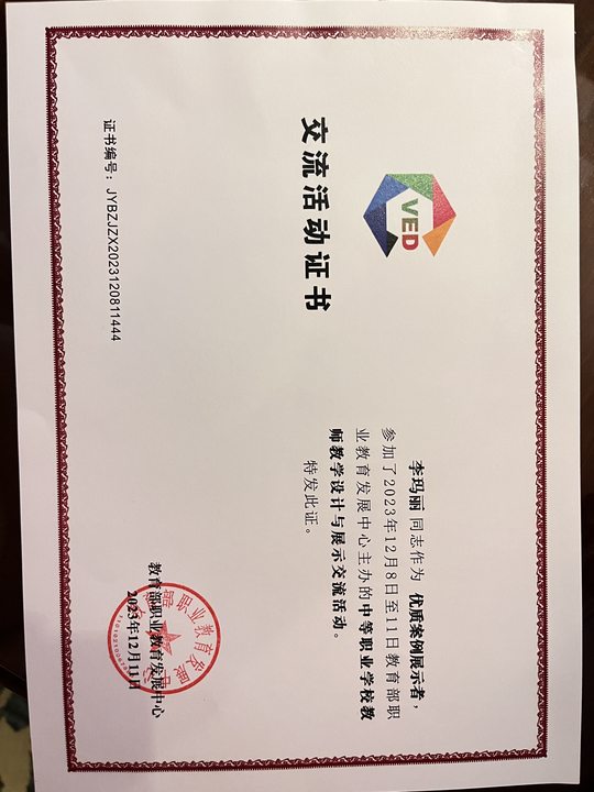 12月8日至11日,2023年中等職業(yè)學(xué)校農(nóng)林類和現(xiàn)代服務(wù)類教師教學(xué)設(shè)計(jì)與展示交流活動在重慶舉行,紹興財(cái)經(jīng)旅游學(xué)校文秘教師李瑪麗經(jīng)過省賽選拔參加了此次活動,并通過精心準(zhǔn)備取得優(yōu)異成績。