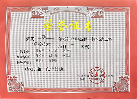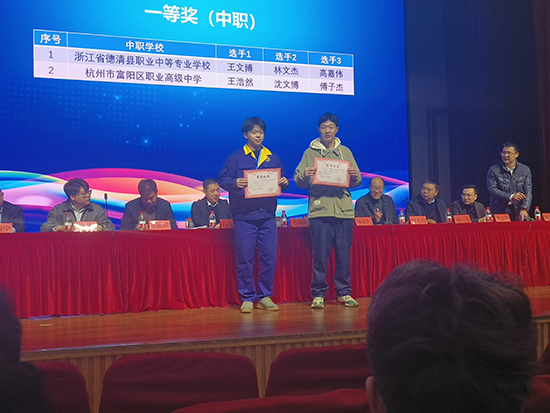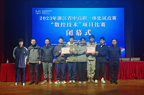 12月11日,2023年浙江省中高職一體化試點賽“數控技術”比賽項目在浙江機電職業技術學院圓滿落幕。德清職業中專教師馬紀孝、王穎斌指導的高嘉偉、林文杰、王文博3名學生與湖州職業技術學院3名高職學生組成的參賽團隊榮獲一等獎(第一名)。